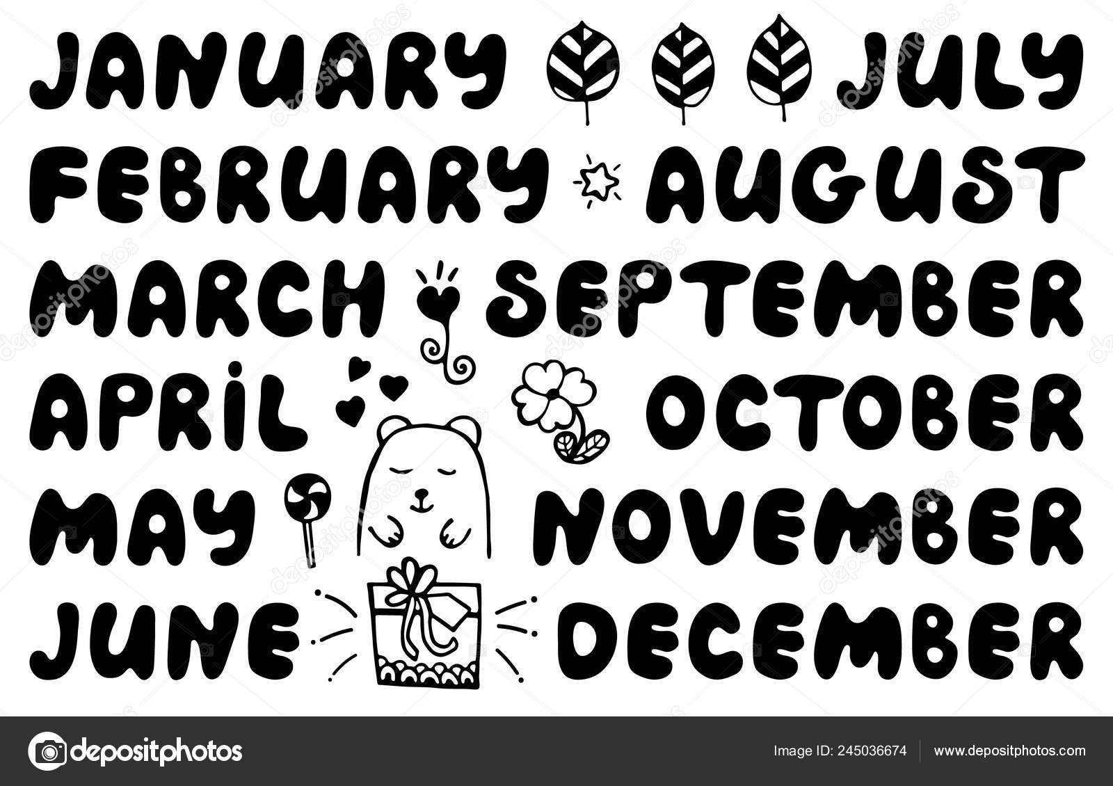 Handwritten Names Months Cute Doodle Elements Set Banner Notebook