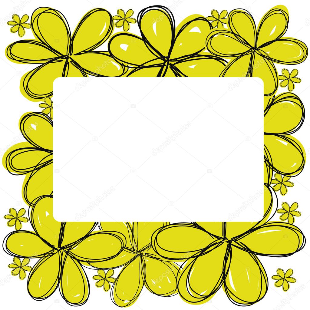 Yellow Flowers Doodle With White Square Space At Center Vector