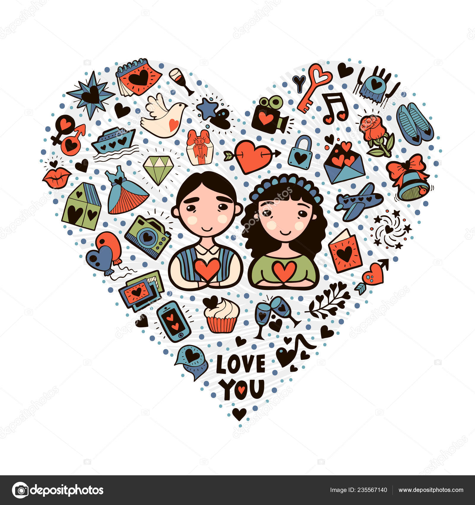 Vector Heart Shape Made Of Cute Doodles Stock Vector